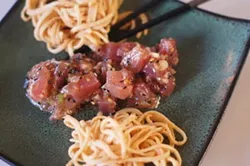 › recipe › 12870Ahi Poke Recipe | Allrecipes Ahi Poke can be made many different ways. My favorite Ahi Poke was prepared by a Hawaiian BBQ restaurant. This recipe is similar to that of the restaurant. I added ginger (chopped small), white onion (sliced), lemon juice, and I used Shoyu sauce instead of regular soy sauce. It was delicious. My family asked for it two weekends in a row.